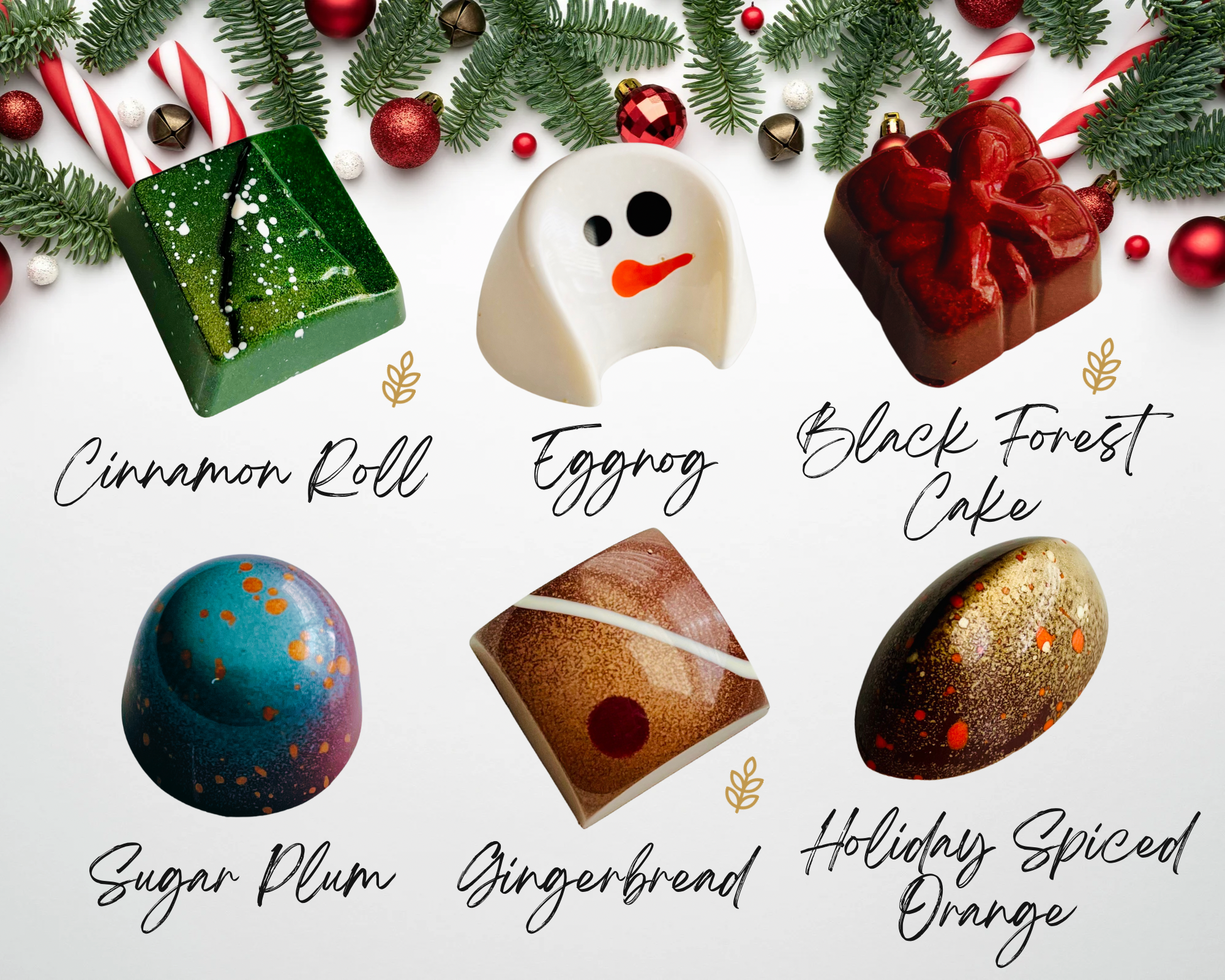 Experience our new collection of festive holiday Marble & Steel bonbons in one of our signature 6 piece gift boxes.