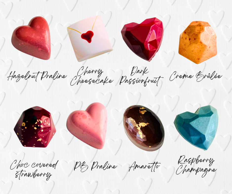 Indulge in our exquisite Valentine’s Day 12 Piece Bonbon Gift Box, featuring our handcrafted Marble & Steel bonbons. With a blend of both classic and unique flavors specially designed for this romantic holiday, this chocolate box is the perfect choice for sharing with your significant other. Treat your taste buds and your loved one to a luxurious experience with our carefully curated selection.